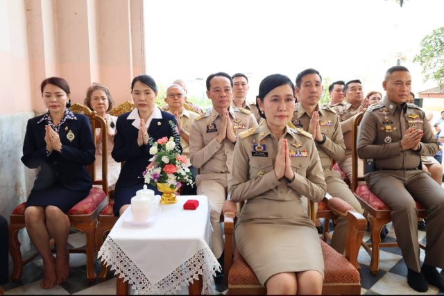 รมต.กระทรวงพาณิชย์ ศุภจี สุธรรมพันธุ์ เข้ากราบสักการะและปิดทองพระร่วงโรจนฤทธิ์ วัดพระปฐมเจดีย์ นครปฐม