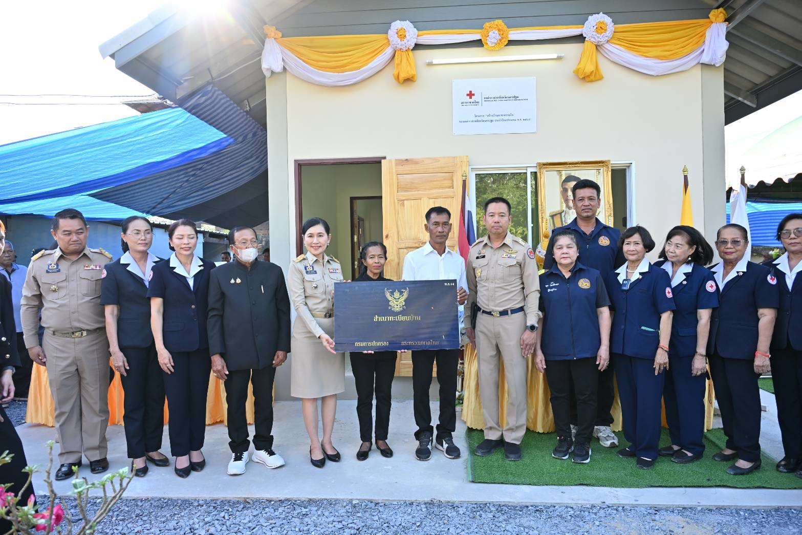 สำหรับในวันนี้ เหล่ากาชาดจังหวัดนครปฐม ได้จัดให้มีพิธีมอบบ้าน ให้กับ นายวสันต์ หว่างสาย อายุ 45 ปี บ้านเลขที่ 13 หมู่ 8 ตำบลดอนยายหอม อำเภอเมืองนครปฐม ซึ่งที่พักอาศัยเดิมมีสภาพชำรุดทรุดโทรม และนายอุดร เอมหลาด อายุ 51 ปี บ้านเลขที่ 3/3 หมู่ 1 ตำบลคลองโยง อำเภอพุทธมณฑล ซึ่งที่พักอาศัยเดิมมีสภาพชำรุดทรุดโทรม